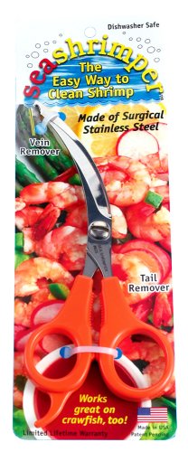 These scissors are a must have for anyone who loves shrimp and crawfish. The days of having to use a dangerous kitchen knife to remove shells, tails or veins are over. Harold Imports shrimper is made of surgical steel and will cut through your seafood like butter. They have a curved blade that matches the contour of a shrimp. Plus, they have a unique vein removing tip. Nothing beats the wonderful taste of shrimp and crawfish and nothing compares to Harold Imports powerful and easy to use shrimpe
